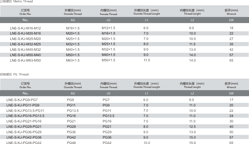 產(chǎn)品規(guī)格:公制(M)、德制(PG)