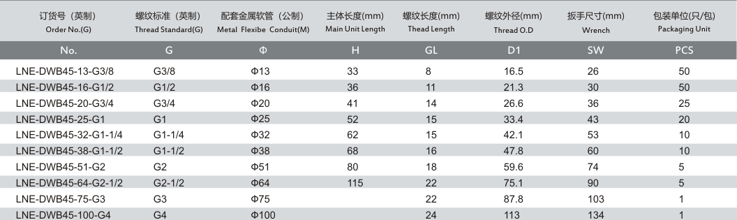 產(chǎn)品名稱:LNE-DWB 不銹鋼45度接頭