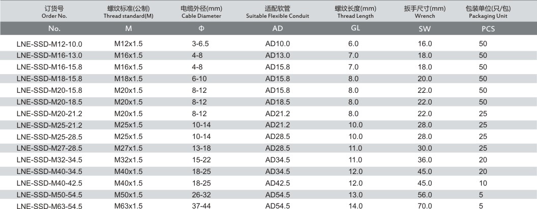 螺牙規(guī)格: 公制(M)、德制(PG)、英制(G)及美制(NPT)。