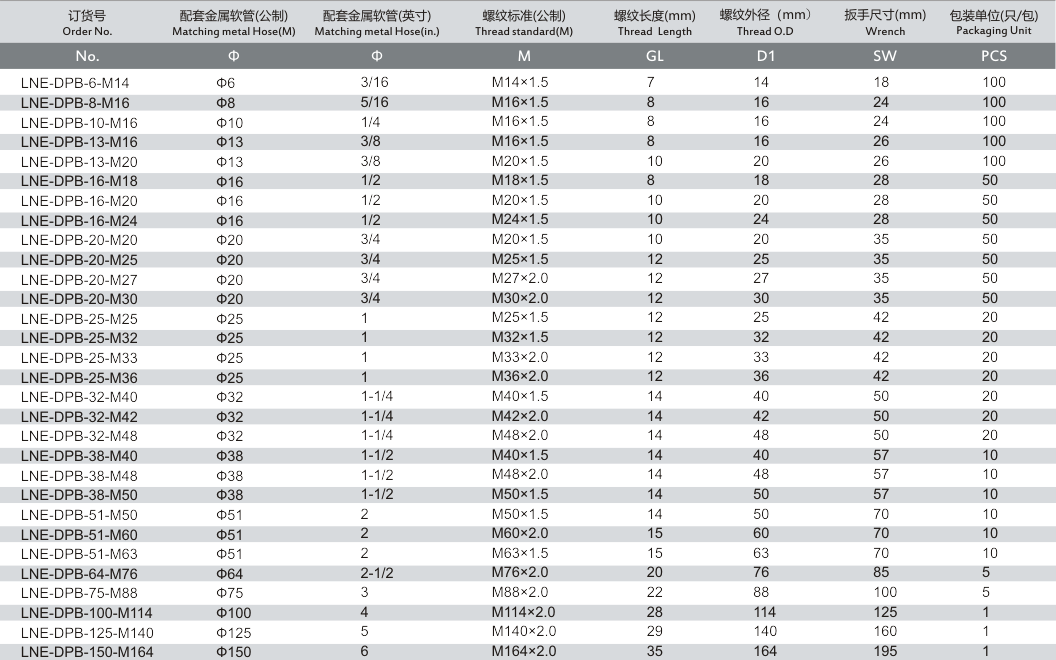 產(chǎn)品名稱: LNE-DPB 不銹鋼端式接頭