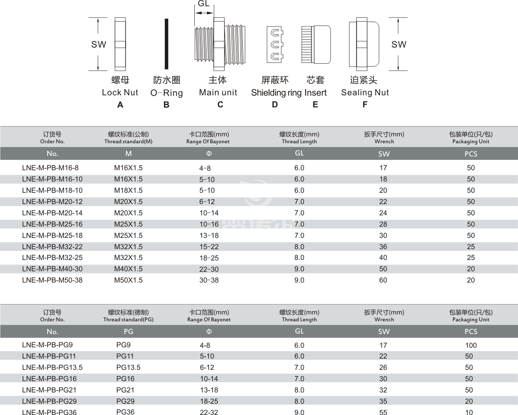 產(chǎn)品名稱:LNE-M-PB 黃銅屏蔽電纜防水接頭