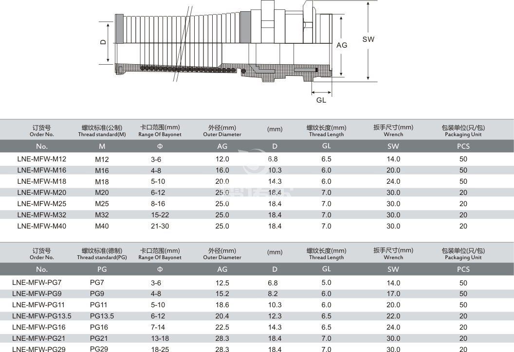 螺牙規(guī)格:公制(M)、德制(PG)、英制(G)及美制(NPT)。