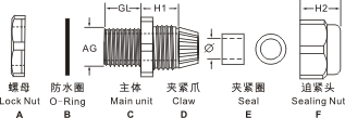 產品特性:特殊夾緊爪與密封件特殊之設計,配合迫緊頭裝配省時便利,夾緊電纜范圍大,