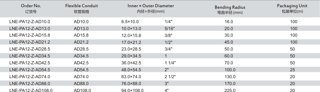 產(chǎn)品名稱:LNE-12-Z 阻燃尼龍12軟管